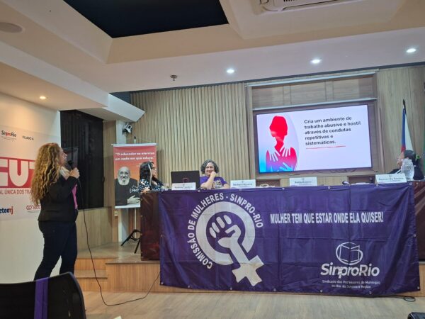 As palestrantes, Bárbara Bezerra e Katia Branco, trouxeram importantes reflexões sobre as diversas formas de assédio — moral, sexual e institucional — e destacaram o papel fundamental da informação, da solidariedade e da ação coletiva no enfrentamento dessas violências.