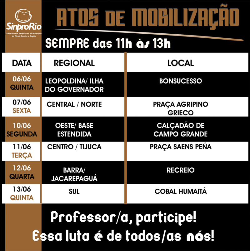 A assembleia aprovou ainda, como estratégia de mobilização, um conjunto de atos pela cidade (vejam o quadro abaixo).