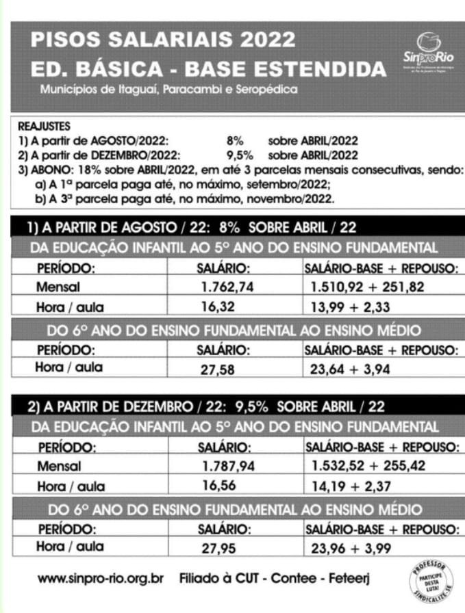 Foi assinado, no dia 06 de setembro de 2022, o Termo Aditivo à CCT da Ed. Básica- Base Estendida de 2022-2023. A Base Estendida é composta pelos municípios de Itaguaí, Paracambi e Seropédica.