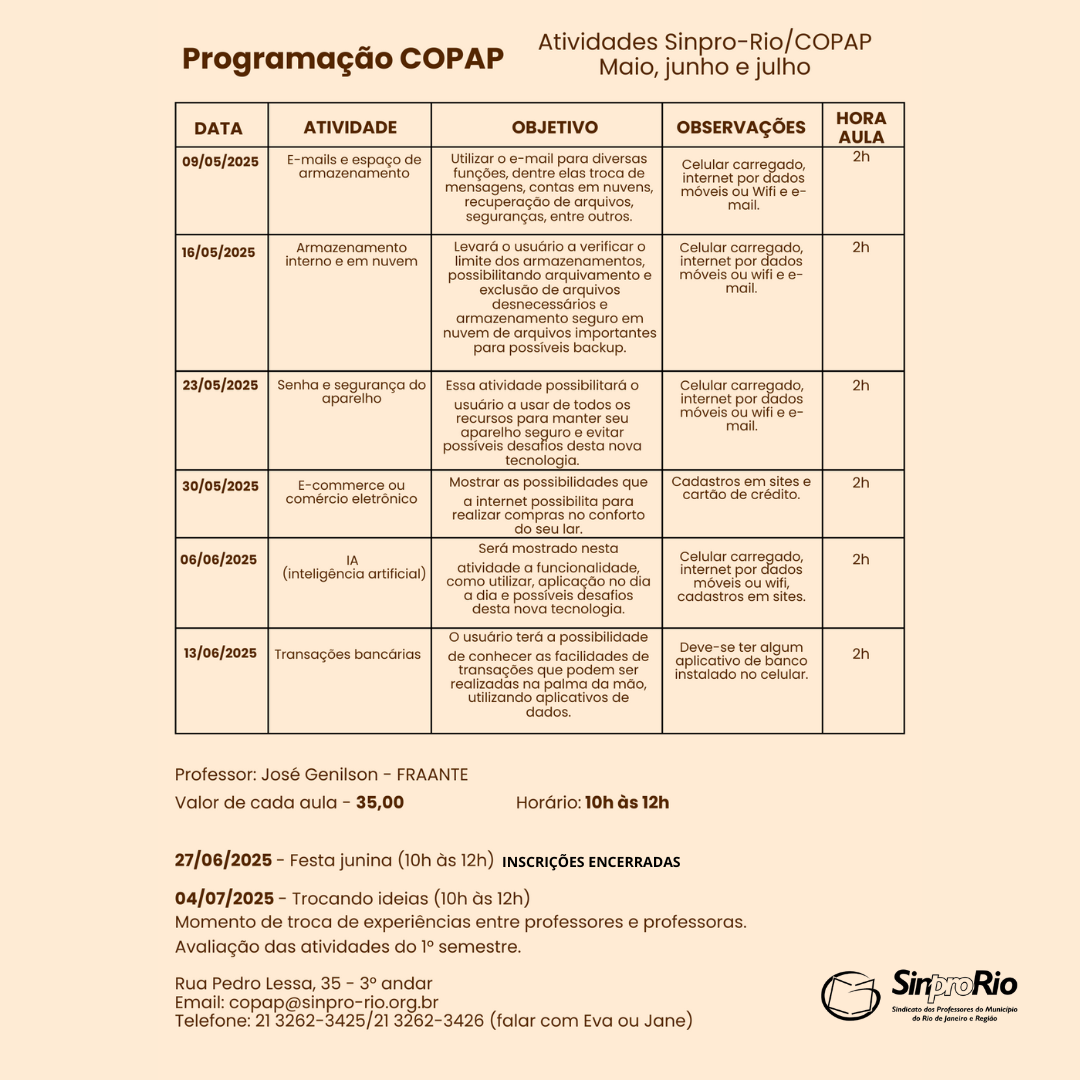 Confira a programação de Maio, Junho e Julho de 2025.