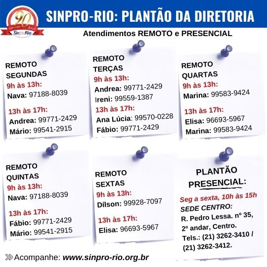 - Dúvidas? Procure o PLANTÃO DA DIRETORIA DO SINPRO-RIO (de segunda a sexta, exceto feriados):
