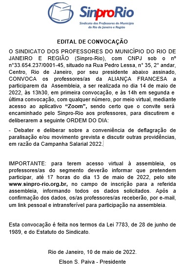 Camp. Salarial 2022 – Aliança Francesa: assembleia 14/05, às 13h30!