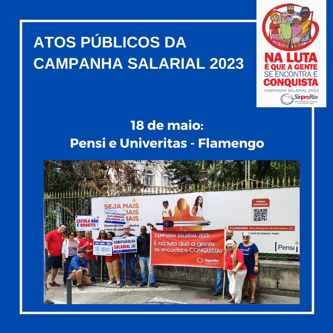 O Sinpro-Rio realizou neste 18 de maio mais um ato da Campanha Salarial 2023. Desta vez, diretores e diretoras se dirigiram ao Colégio Pensi e Univeritas, no bairro do Flamengo. Novamente, professoras/es e moradoras/es da região dialogaram e apoiaram o ato da diretoria do Sindicato.