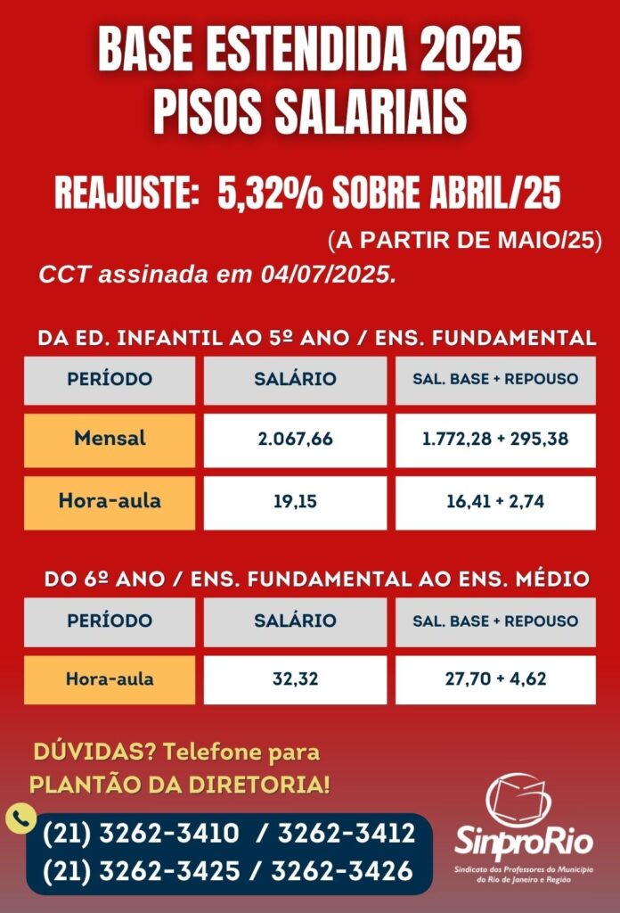 Foi assinada, no dia 04 de julho de 2025, a Convenção Coletiva de Trabalho bianual da Educação Básica da Base Estendida (municípios de Itaguaí, Paracambi e Seropédica). Leia a íntegra da Convenção e saiba os detalhes abaixo:
