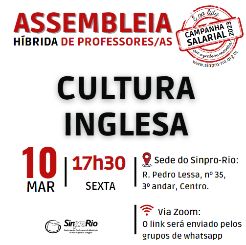 CAMP. SALARIAL 2023 – CULTURA INGLESA: 2ª ASSEMBLEIA DIA 28/4, ÀS 18H30!