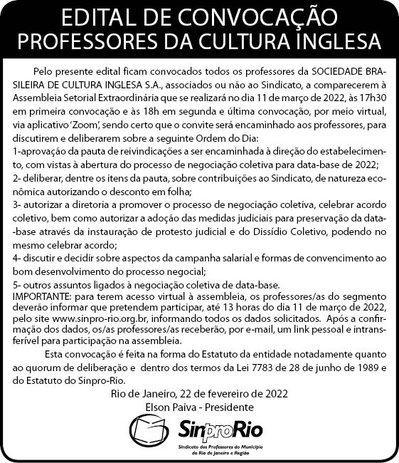 - Quer saber a pauta da assembleia? Leia o edital publicado na página 3 do jornal Monitor Mercantil do dia 22/02/2022, CLICANDO AQUI ou pela imagem abaixo: