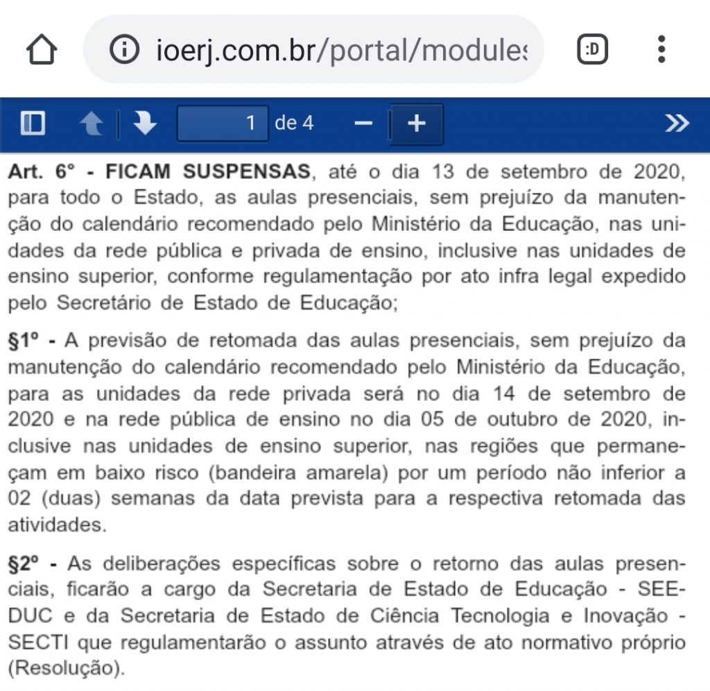 – Veja o DECRETO diretamente pela página do Diário Oficial do Estado do Rio de Janeiro – 19/08/2020 – edição extra AQUI! ou leia o trecho da imagem abaixo: