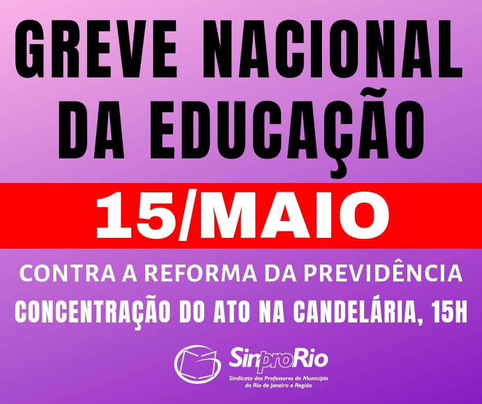 Às 15h, na Candelária – Ato em apoio à greve da Educação.