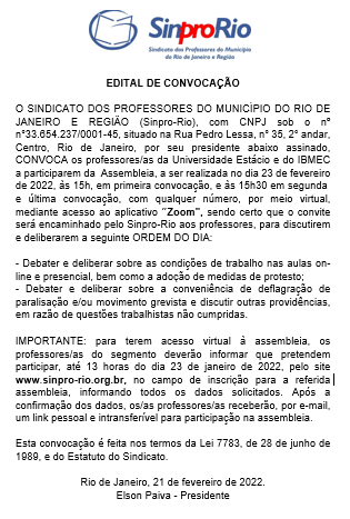 - Leia, no edital abaixo, a pauta que será debatida e faça sua INSCRIÇÃO AQUI até as 13 horas do próprio dia 23.