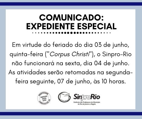 Comunicado de Expediente Especial: dias 03 e 04/06