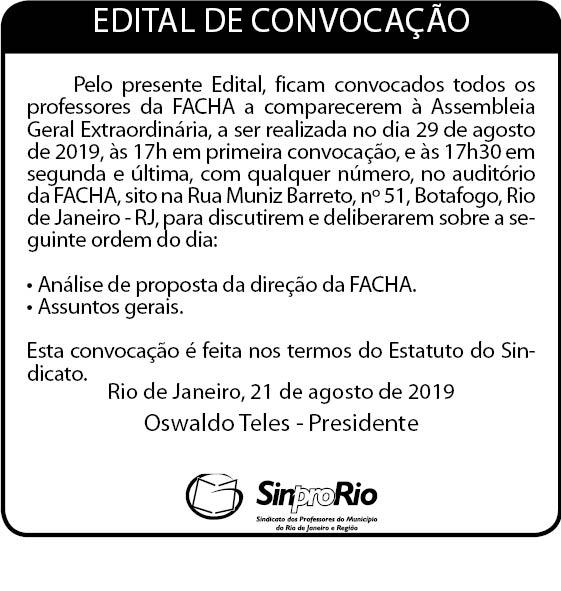 FACHA: assembleia de 29/08 analisará proposta da direção