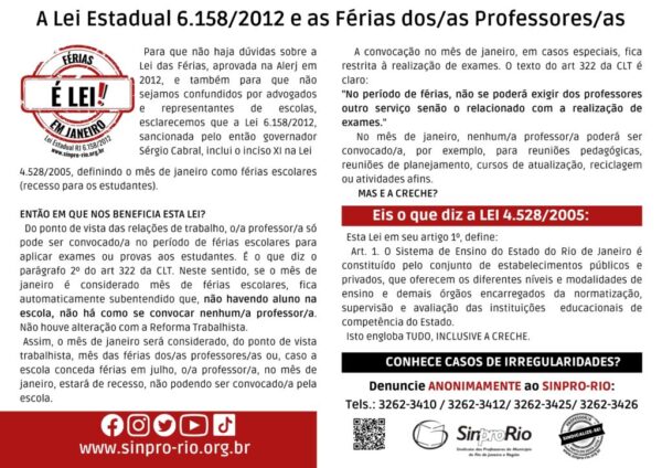 - DÚVIDAS SOBRE AS FÉRIAS EM JANEIRO? O DR. MÁRCIO CORDERO, ASSESSOR JURÍDICO DO SINPRO-RIO RESPONDE; VEJA VÍDEO: