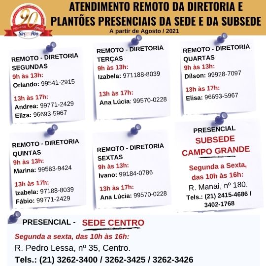 - Contatos do Sinpro-Rio, em agosto/2021: