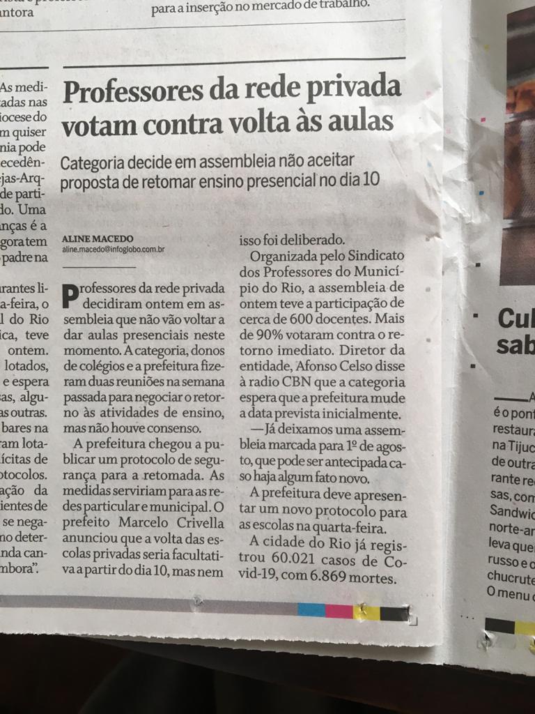 ? Jornal O GLOBO também publicou a matéria, no dia 05/07/2020, página 18. Veja abaixo!