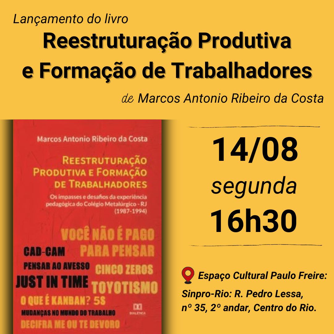 Lançamento do livro “Reestruturação Produtiva e Formação de Trabalhadores”; dia 14/08, às 16h30