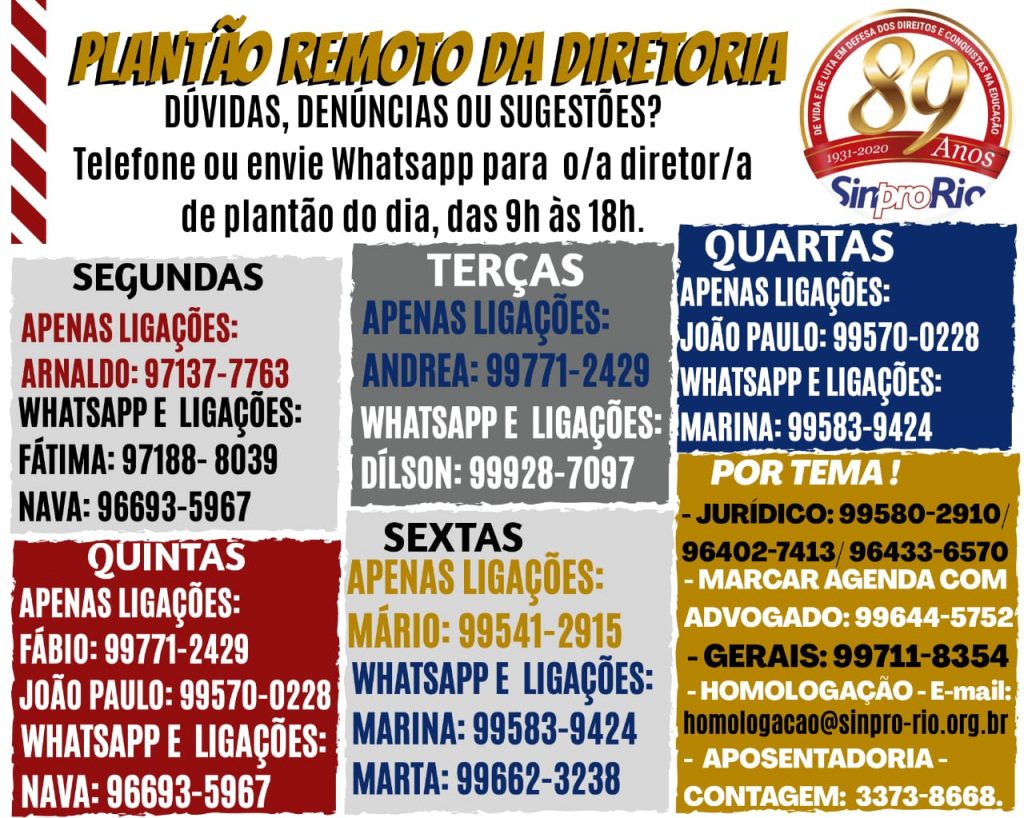 • Dúvidas? Entre em contato com um/a diretor/a do Sinpro-Rio! Veja os contatos abaixo: