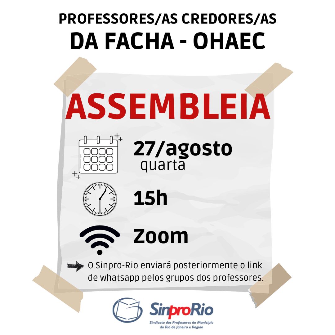 Professor/a credor/a da OHAEC, sua presença na assembleia será fundamental. Leia, abaixo, o edital de convocação: