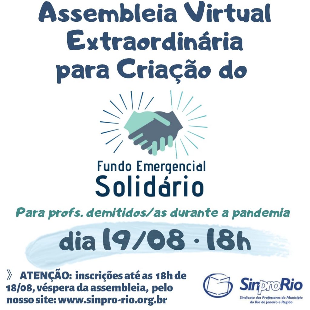 Pré-inscrição assembleia virtual do dia 19/08/2020 às 18h pelo ‘Zoom’