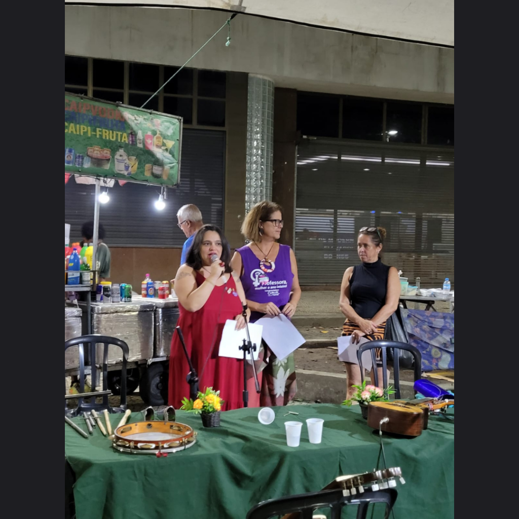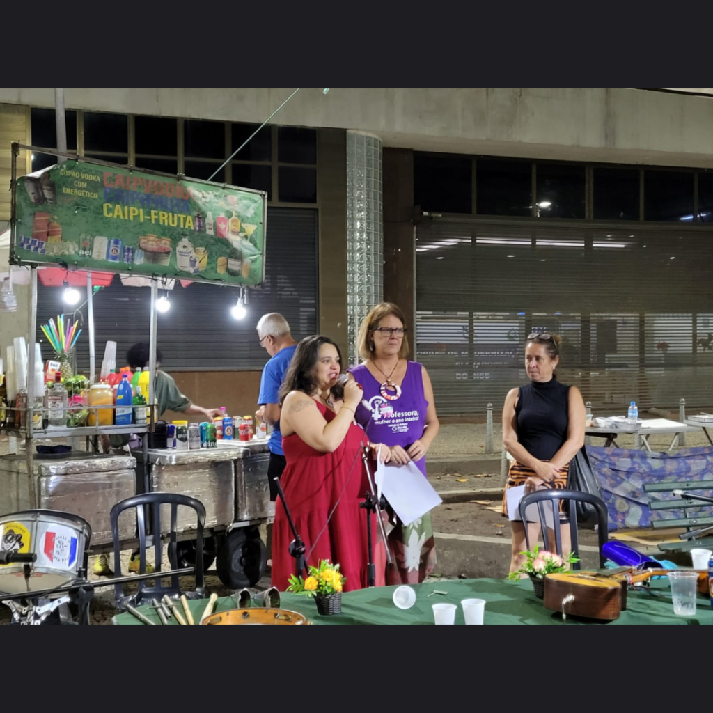 O intervalo do Sim Pro Samba, no dia 14/03, contou com o Sarau das Mulheres, como parte das comemorações do 8M-RJ. Integrantes da Comissão de Mulheres apresentaram poesias para o público.