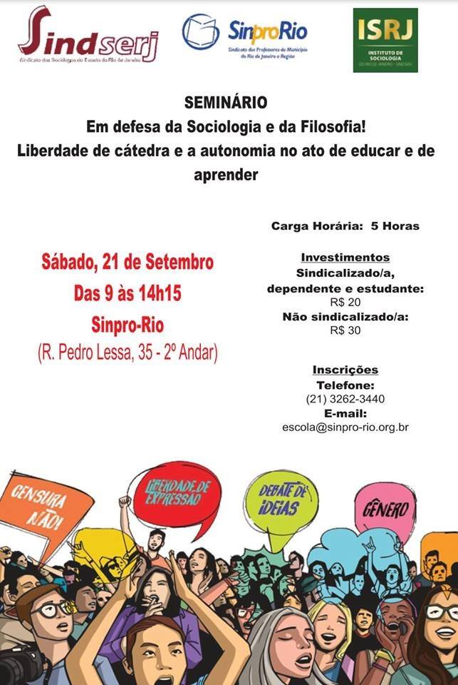 SEMINÁRIO EM DEFESA DA SOCIOLOGIA E DA FILOSOFIA: 21/09, no Sinpro-Rio