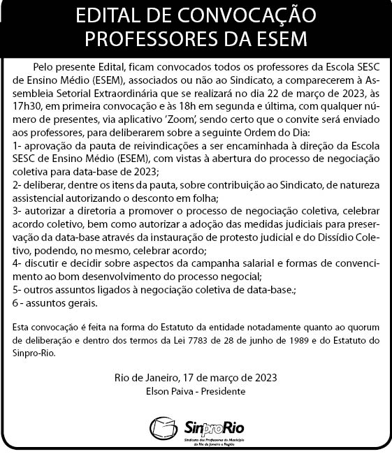 Leia abaixo o edital da Campanha Salarial 2023 para o SESC!