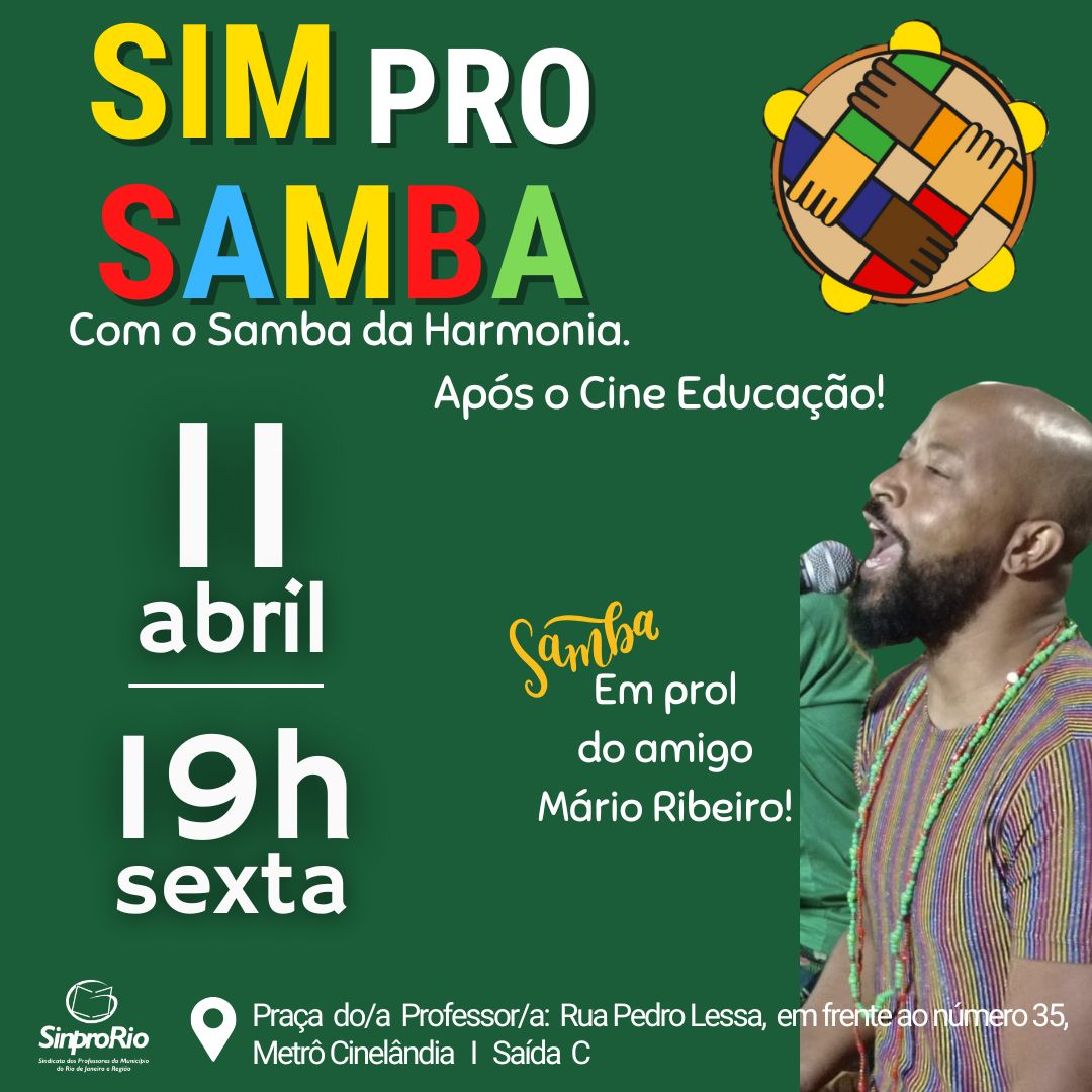 Na Praça do/da Professor/a, logo após o Cine Educação, a roda de samba terá participação do Samba da Harmonia.