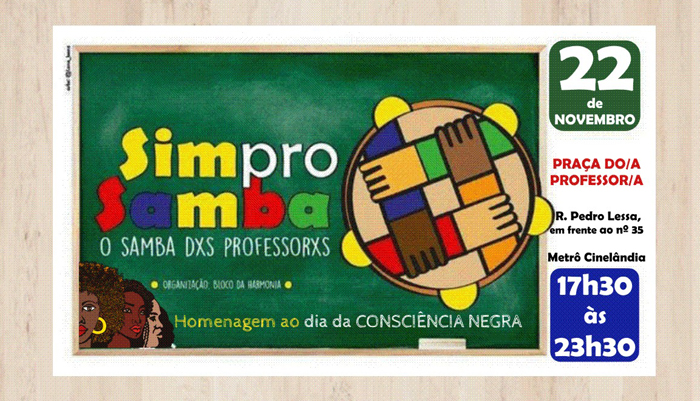SIM pro SAMBA: dia 22/11, 17h30, na praça dos/as Professores/as