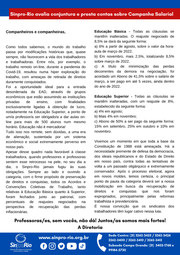 Sinpro-Rio avalia conjuntura e aborda Campanha Salarial 2022!