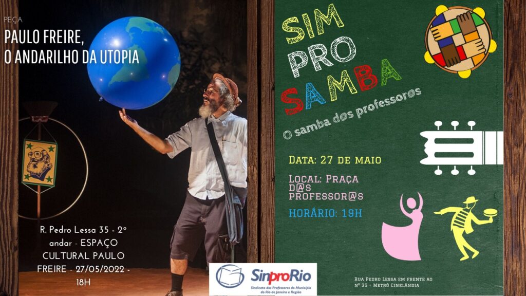 Após o evento de inauguração do Espaço Cultural Paulo Freire, haverá mais uma edição do “Sim Pro Samba”, o samba dos/as professores/as que acontece na praça em frente ao prédio que sedia o nosso Sindicato dos/as Professores/as, Sinpro-Rio, na Rua Pedro Lessa, 35, próximo à Cinelândia.