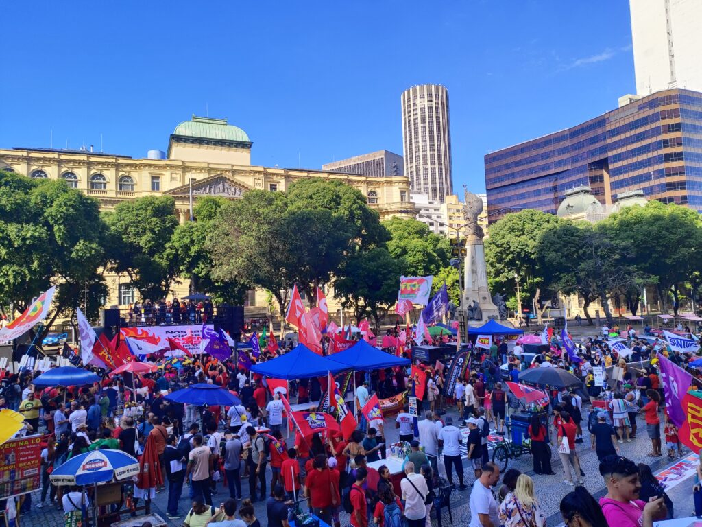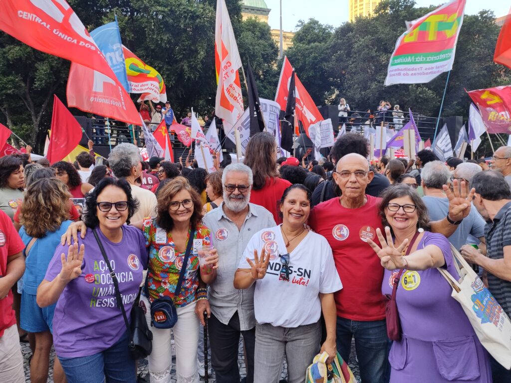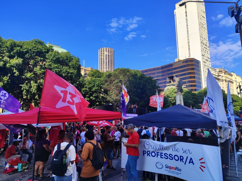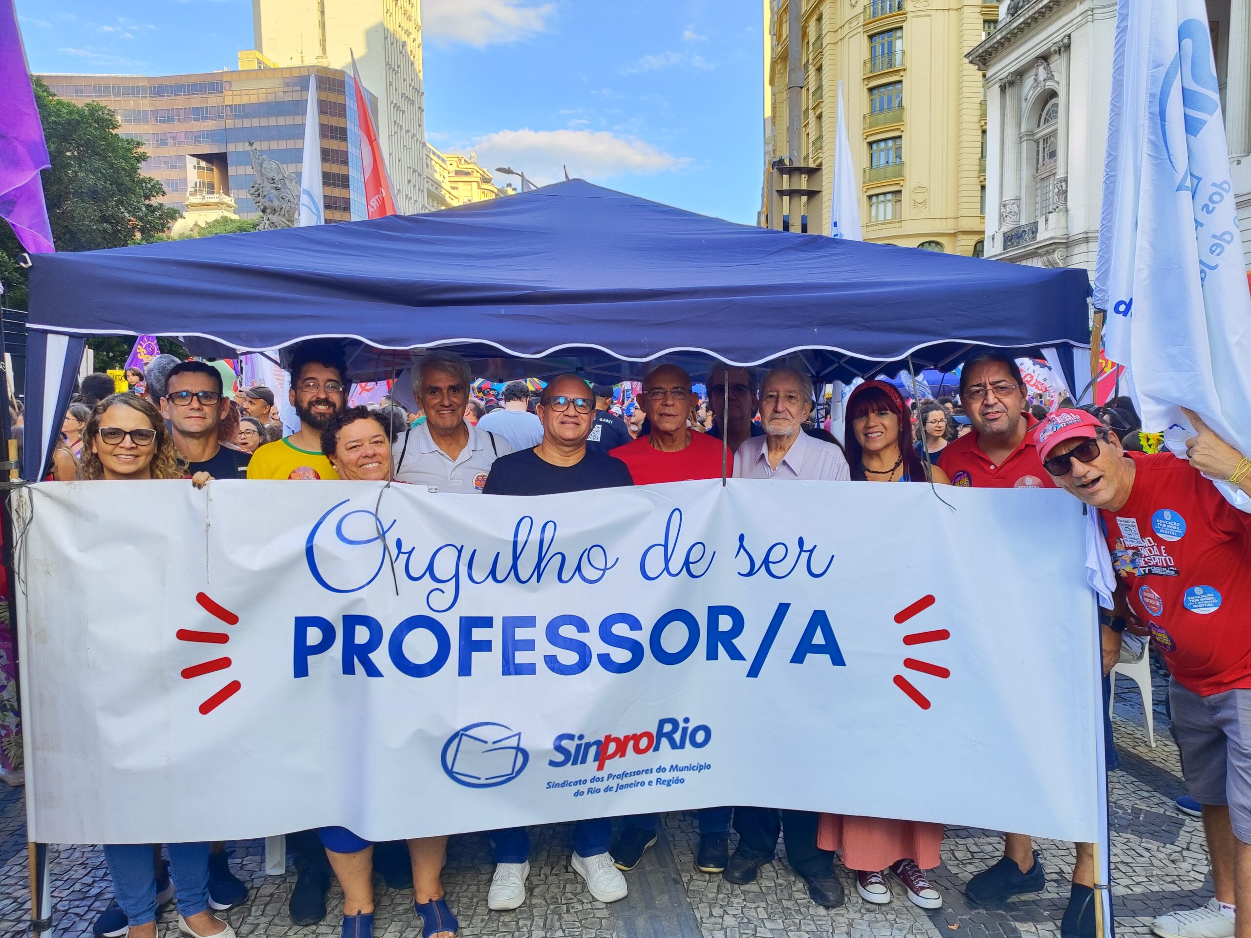 Trabalhadoras e trabalhadores das mais diversas categorias sindicais se manifestaram no Primeiro de Maio, na Cinelândia. Como sempre, o Sinpro-Rio esteve presente, na luta contra a exploração, por remuneração e condições de trabalho dignas. O ato foi uma demonstração de unidade, com as centrais sindicais em conjunto.
