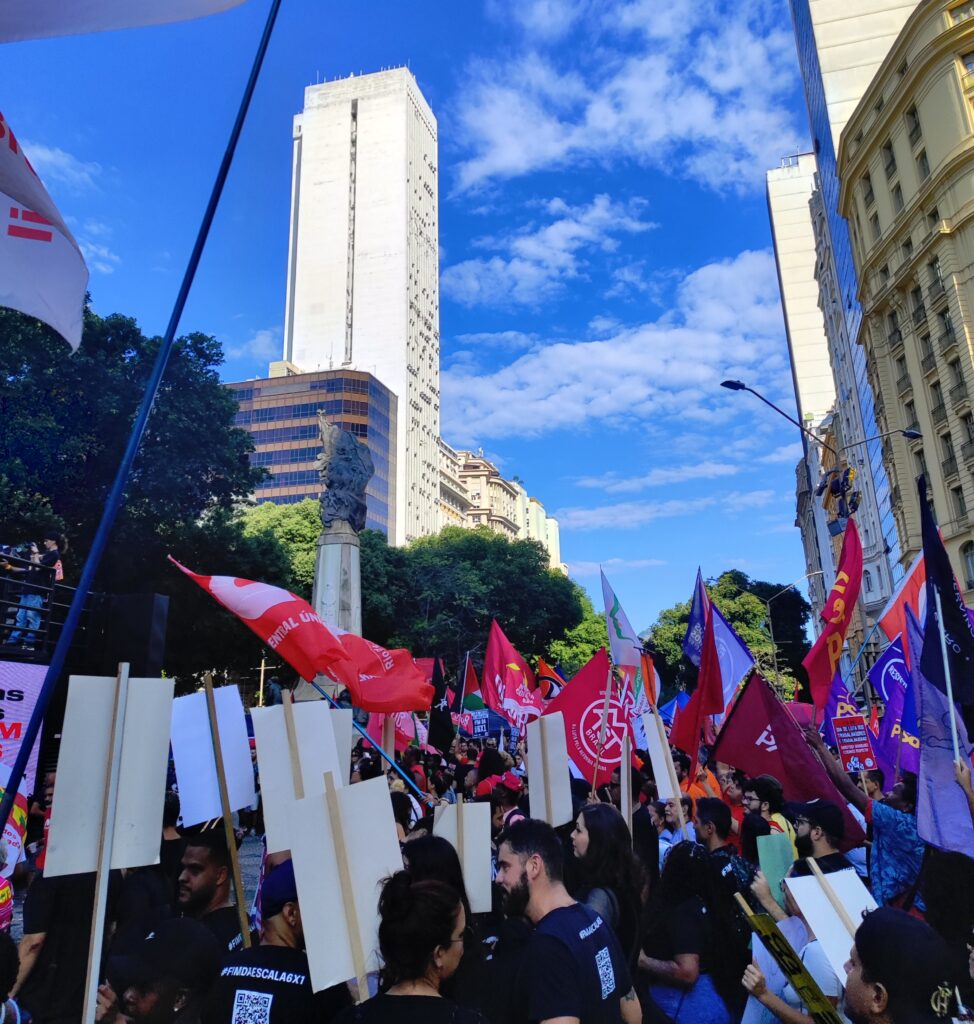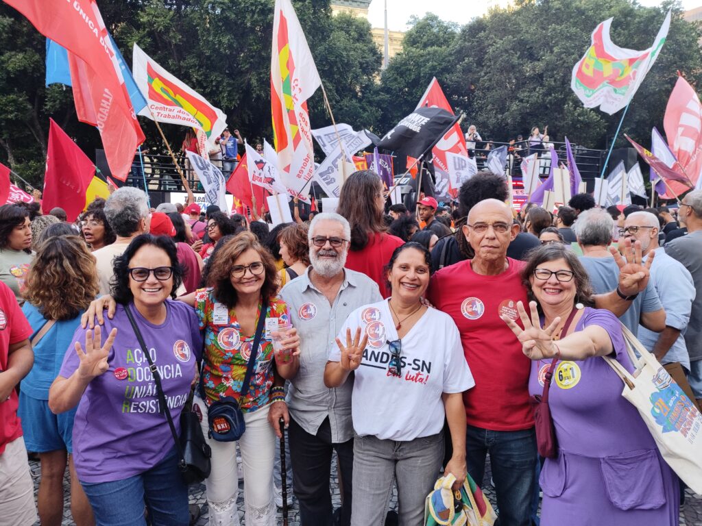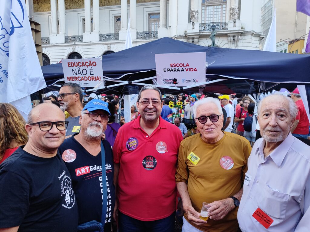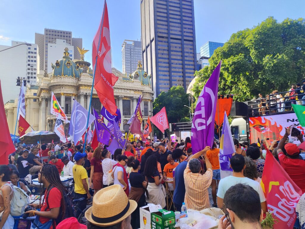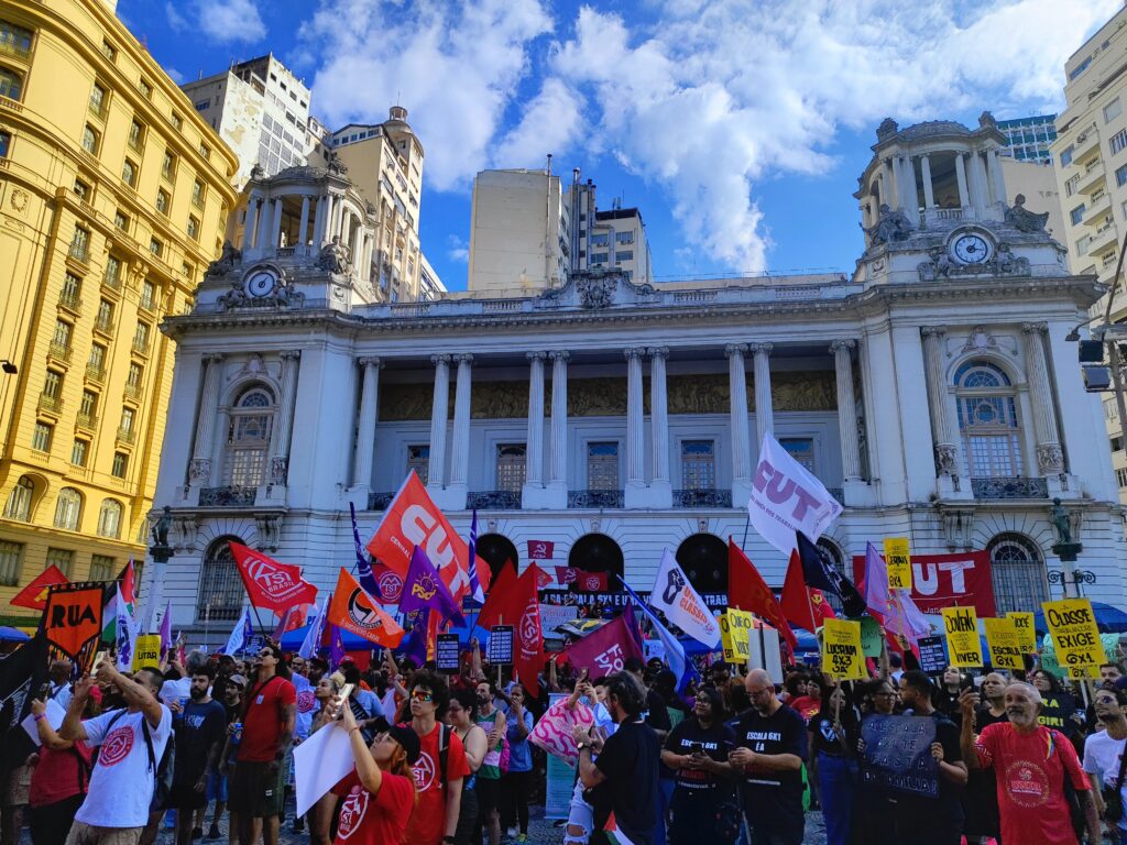 Trabalhadoras e trabalhadores das mais diversas categorias sindicais se manifestaram no Primeiro de Maio, na Cinelândia. Como sempre, o Sinpro-Rio esteve presente, na luta contra a exploração, por remuneração e condições de trabalho dignas. O ato foi uma demonstração de unidade, com as centrais sindicais em conjunto.