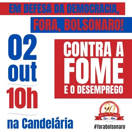 O Brasil, que está contra os desmandos do governo federal, as falcatruas na compra e na aplicação da vacina contra a Covid-19, os ataques aos direitos dos trabalhadores, estará nas ruas, no dia 02 de outubro de 2021.