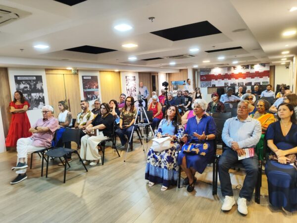 O Espaço Cultural Paulo Freire ficou repleto de emoção com o lançamento da Cartilha e a homenagem aos mestres Ana Lúcia Rodrigues da Silva, Fátima Gomes Ferreira, Adriana Bernardo de Paiva, Francisco Nascimento, Ronaldo Forti e Sérgio Gomes.