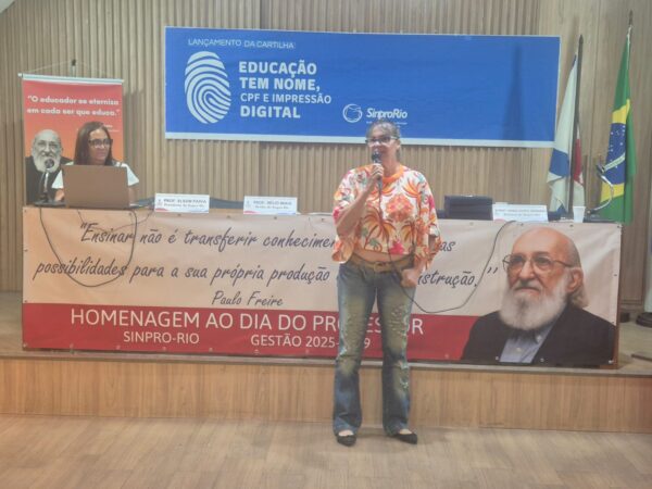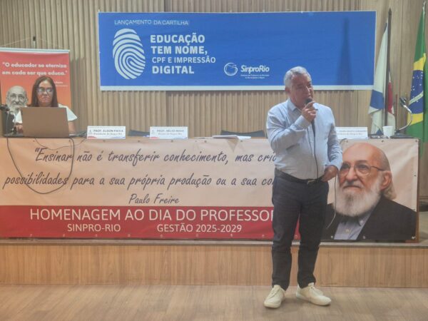 Em sua fala, o professor Francisco comentou sobre a Campanha de Valorização do Magistério do Sinpro-Rio, afirmando que o Sindicato lançou um olhar mais afetuoso sobre nossos colegas. “Ensinar é um de resistência, física e emocional, com uma forma cidadã e política. Viver é uma grande resistência”, ressaltou.