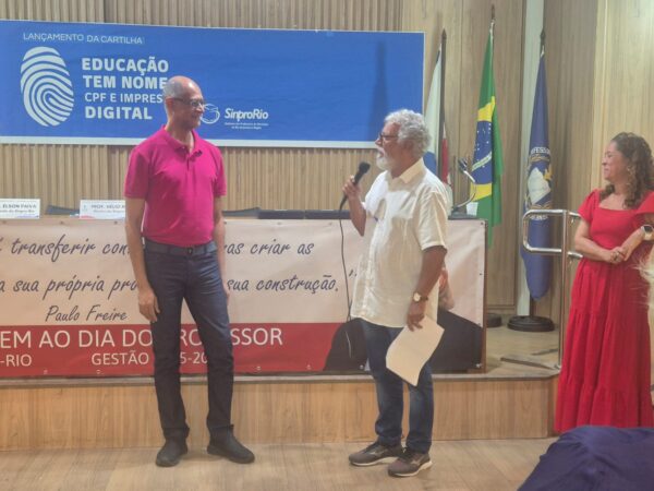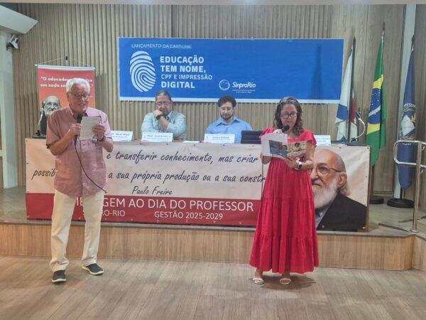 Na cerimônia, aberta com a apresentação da diretora Maria Marta Cerqueira, o presidente do Sinpro-Rio, Elson Paiva, afirmou que a Campanha veio para destacar que “nossa educação não é feita por máquinas e sim por pessoas” e que ela foi realizada para além da categoria, para que a sociedade entenda a importância de professoras e professores. “Levamos o conhecimento desde a creche ao ensino superior. Nosso Sindicato está aqui para a resistência, para a luta. Educação é um ato de resistência”, finalizou o dirigente.