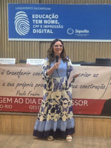 A diretora Maria Marta Cerqueira e o diretor Antonio Rodrigues leram o manifesto presente na cartilha: A “Educação tem a Nossa Cara”, que finaliza da seguinte forma: “Este manifesto é um chamado à resistência: não haverá futuro digno sem professores e professoras respeitados, saudáveis e bem remunerados. Defender a docência é defender o povo, a democracia e a esperança. Que nossas vozes ecoem nas ruas, nas escolas e nas universidades – porque educar é também um ato de coragem e de luta”.