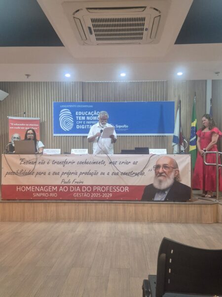 Sempre presente nos atos públicos com o Sinpro-Rio, o professor Ronaldo Forti, igualmente homenageado, construiu uma trajetória sólida, dedicada e profundamente comprometida com o ensino e a formação humana. Professor de Ciências Biológicas, licenciado pela Universidade Gama Filho desde 1982, e especialista em Métodos e Técnicas de Ensino pela Universidade Castelo Branco, Ronaldo carrega no seu percurso a marca da excelência acadêmica e da paixão pelo conhecimento.