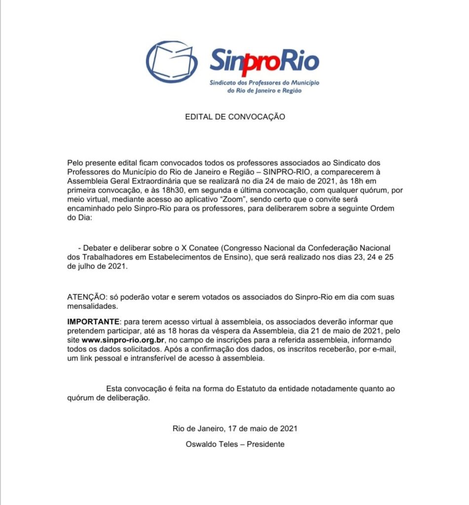 - Inscreva-se clicando aqui e leia a pauta no edital abaixo:
